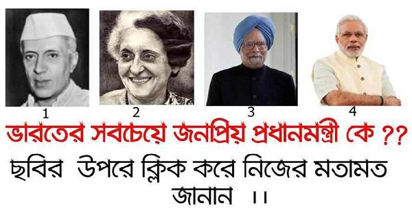 Give Your Opinion Here 1 . Jawaharlal Nehru 2. Indira Gandhi 3. Manmohan Singh 4. Narendra Modi 5. None of the above Created with Survey Creator bongtechscan.blogspot.com is not affiliated with, sponsored by or endorsed by any political party